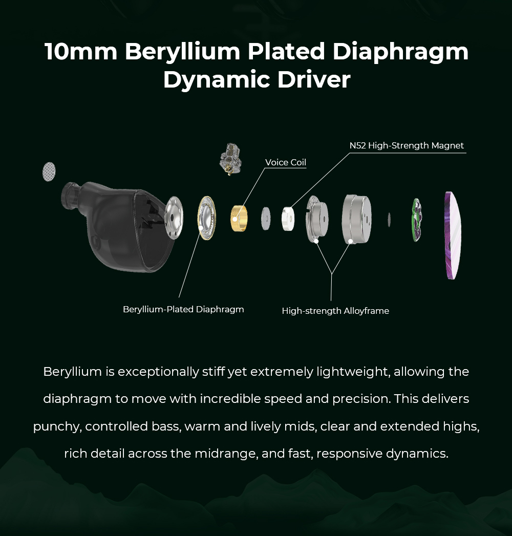 >10mm Beryllium-Plated Dynamic Driver Unit.